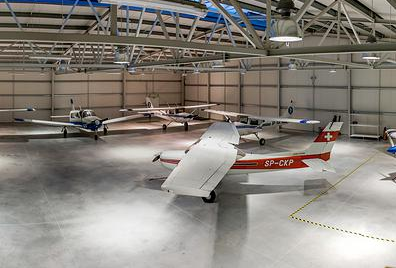 Zapraszamy do nowoczesnego hangaru czynnego 12 miesięcy w roku, 7 dni w tygodniu z dostępem do asfaltowego pasa, w gotowości operacyjnej przez cały rok.